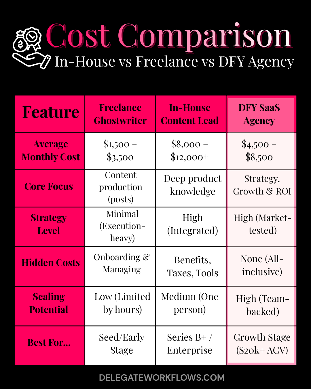 Growth-stage companies with $25K+ ACVs often get more from an agency because they need the full strategy, not just content.